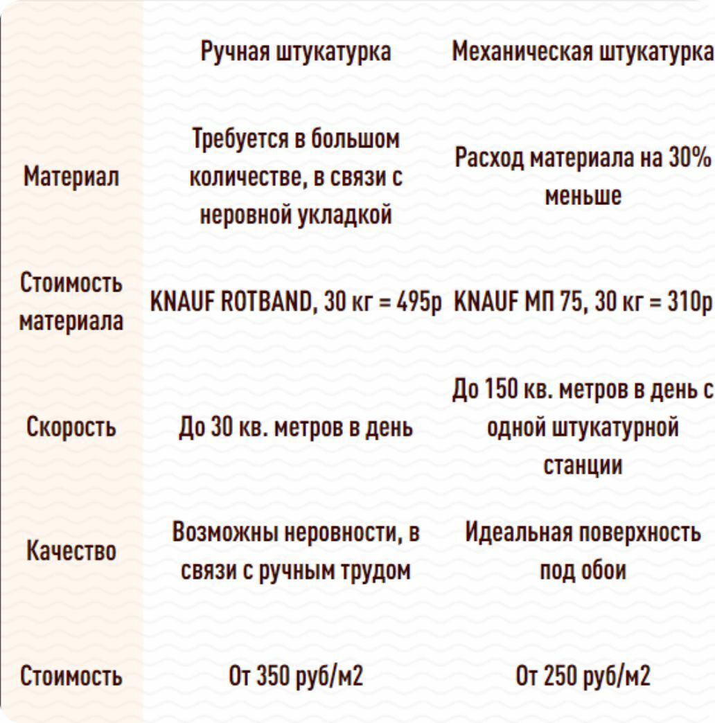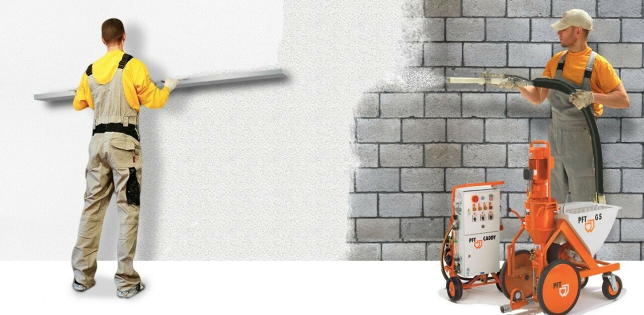 Штукатурка механическим способом подразумевает использование сухих и жидких смесей. Также они различаются по вещественному составу: